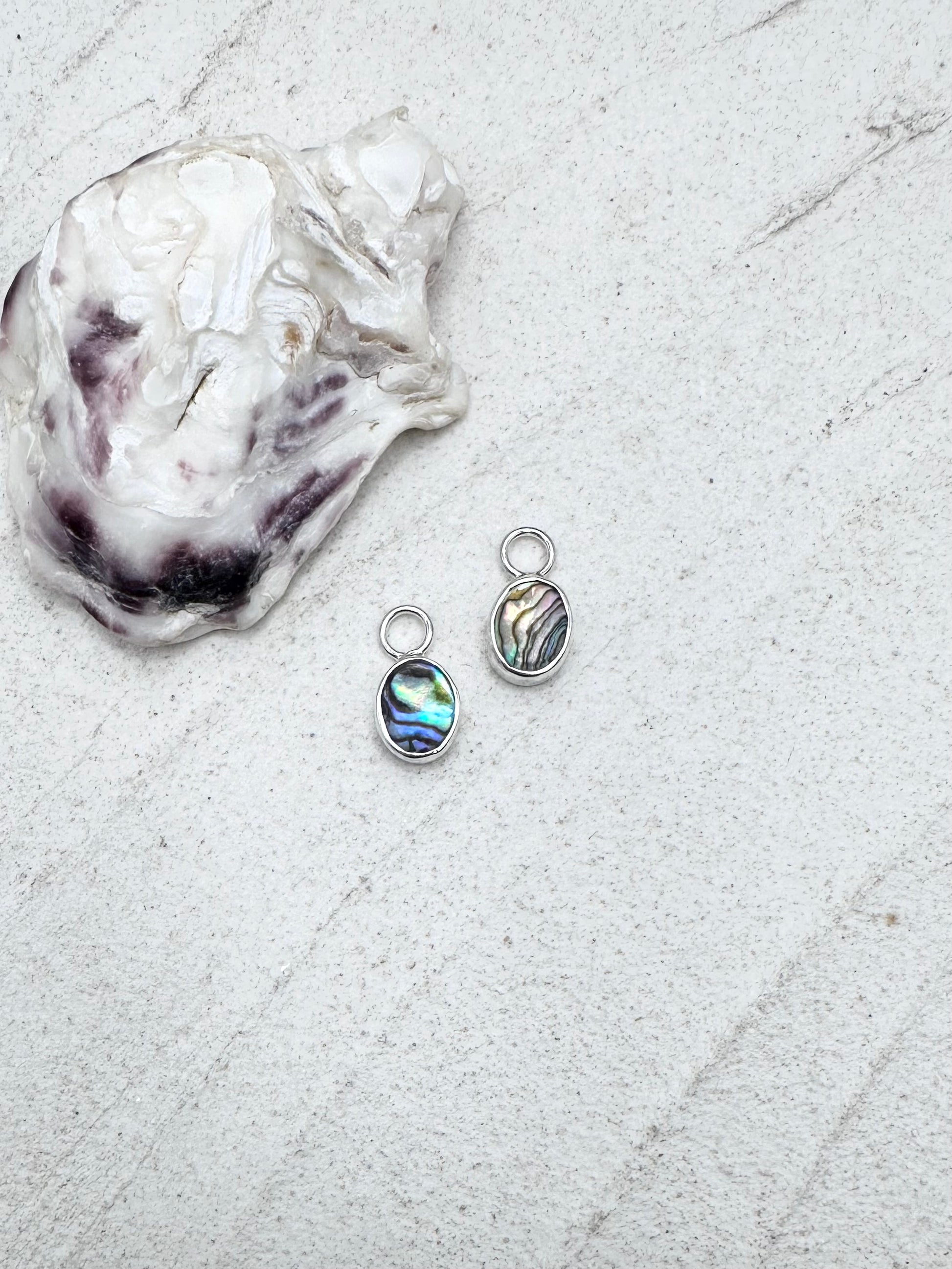 Bring the coast with you wherever you are. Handcrafted in recycled sterling silver and set with Abalone shell. A statement piece by itself or layered with other earrings for a bolder look.