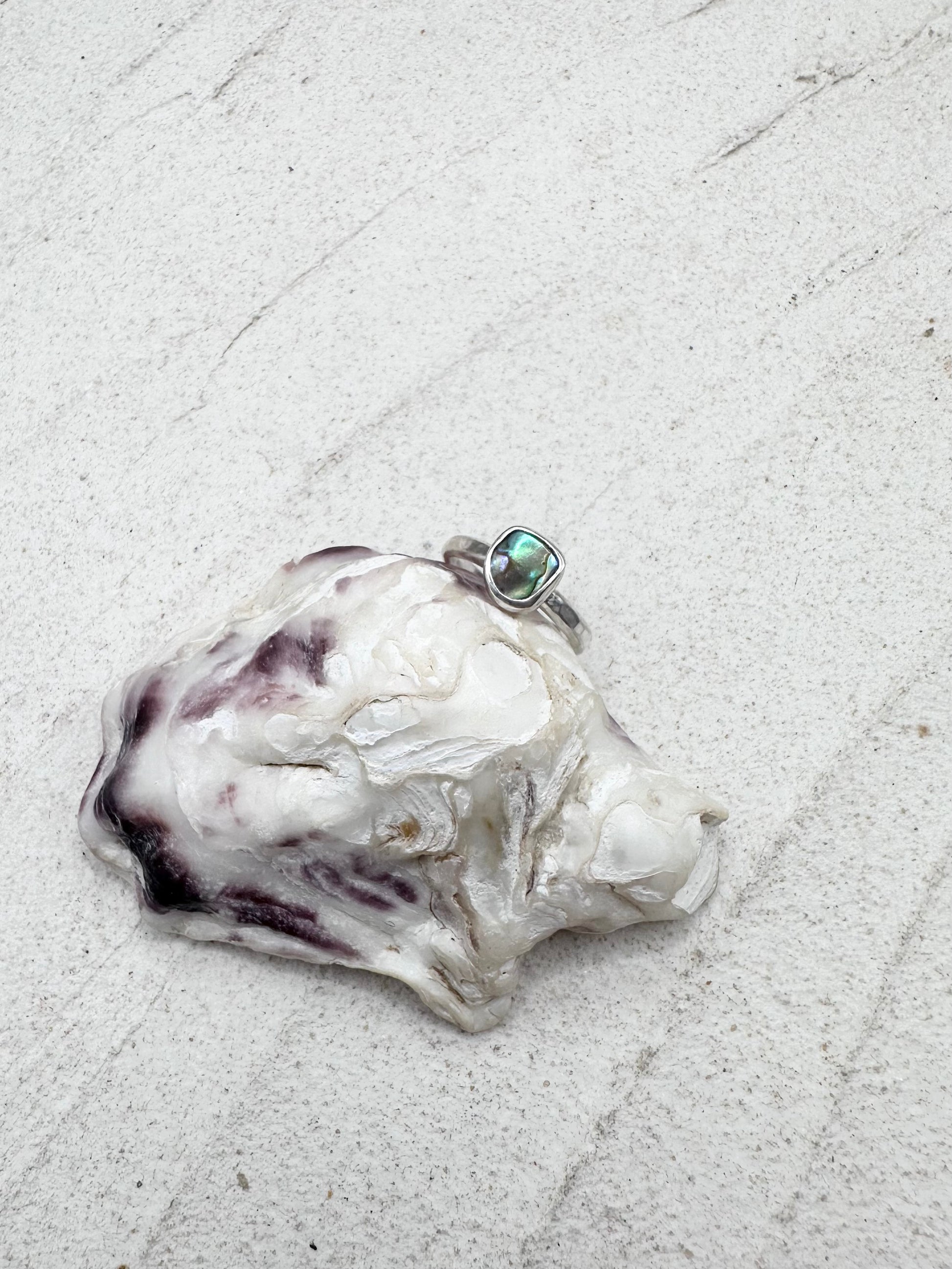 Bring the coast with you wherever you are. Hand-crafted in recycled sterling silver set with shimmering abalone shell, each ring is one-of-a-kind. Wear solo for everyday elegance or wear with other rings for a striking statement.