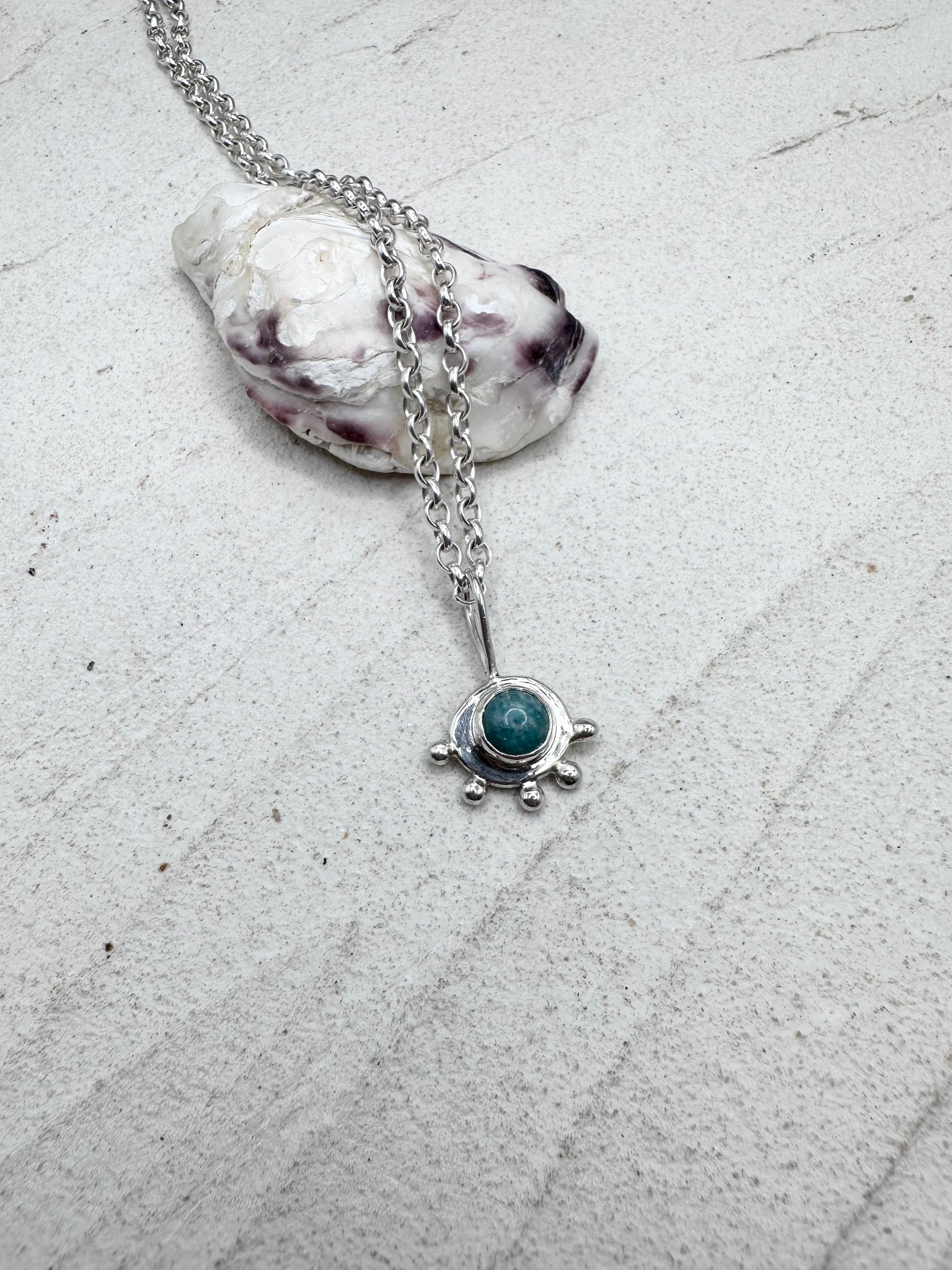 Bring the coast with you wherever you are — these Sunseeker pendants take your favourite beach sunset anywhere you go. Hand-crafted in recycled sterling silver with Amazonite, each necklace is one-of-a-kind. Inspired by the colours of the ocean, each pendant reflects shifting hues of blues and greens, catching the light beautifully from every angle. Wear solo for everyday elegance or layer with other chains for a striking statement.