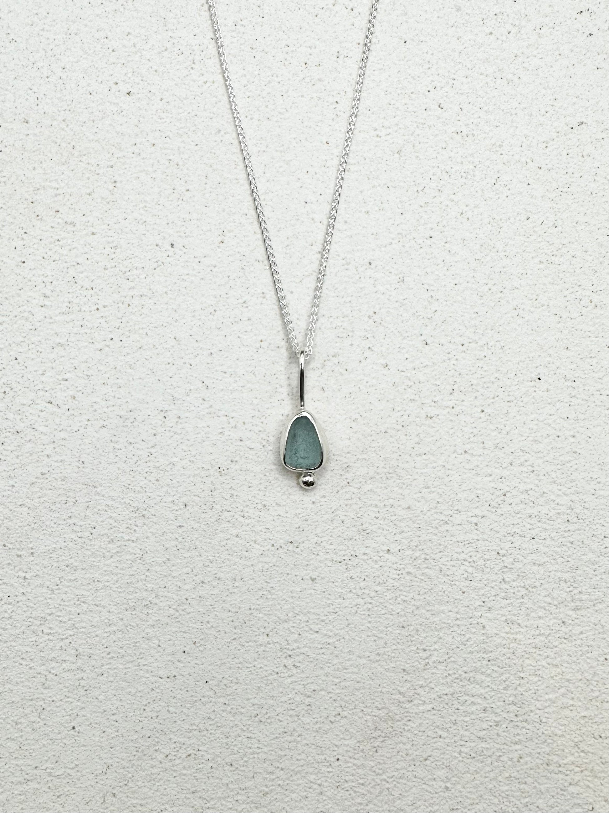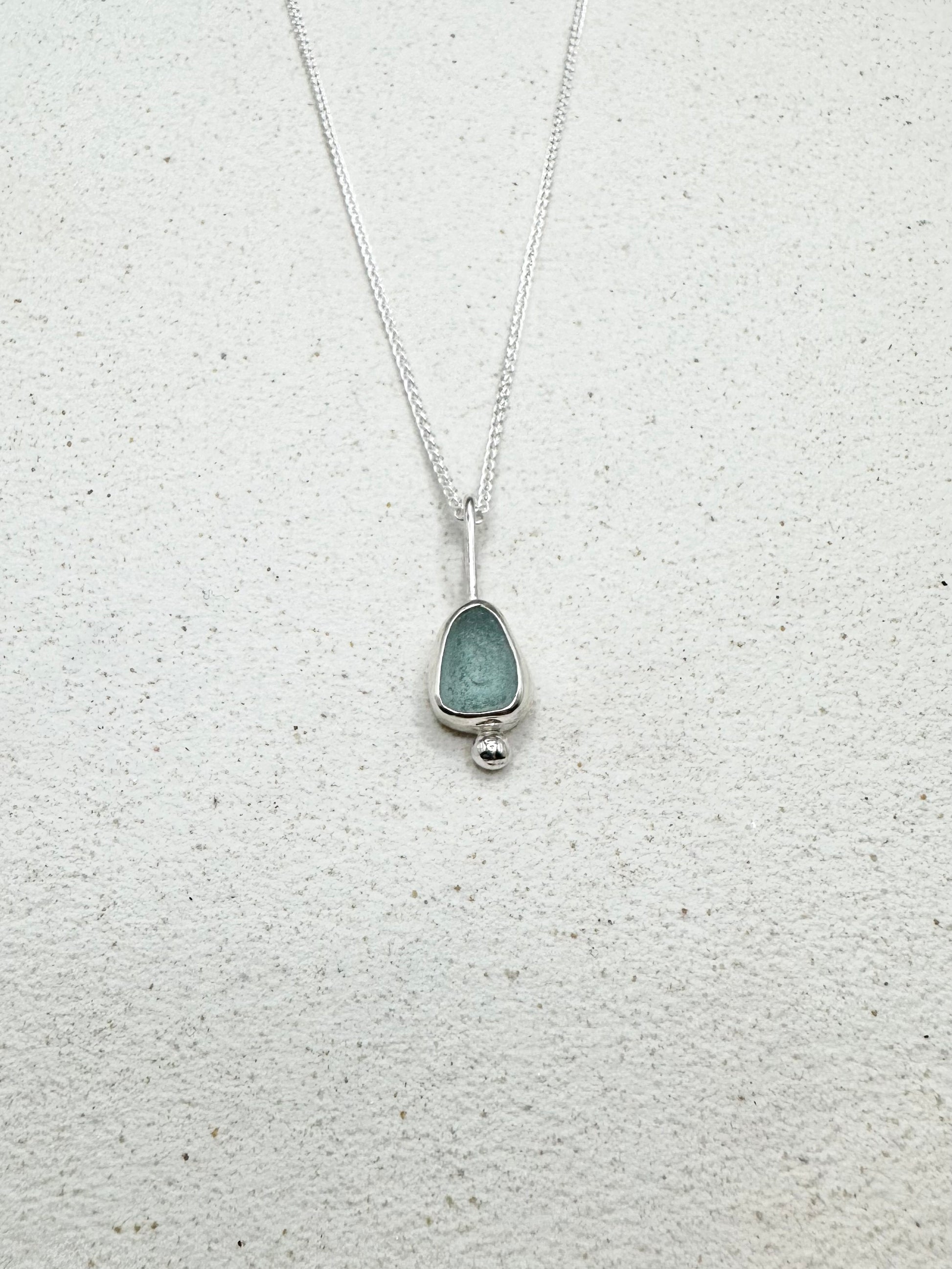 Blue Seaglass Pendant Silver