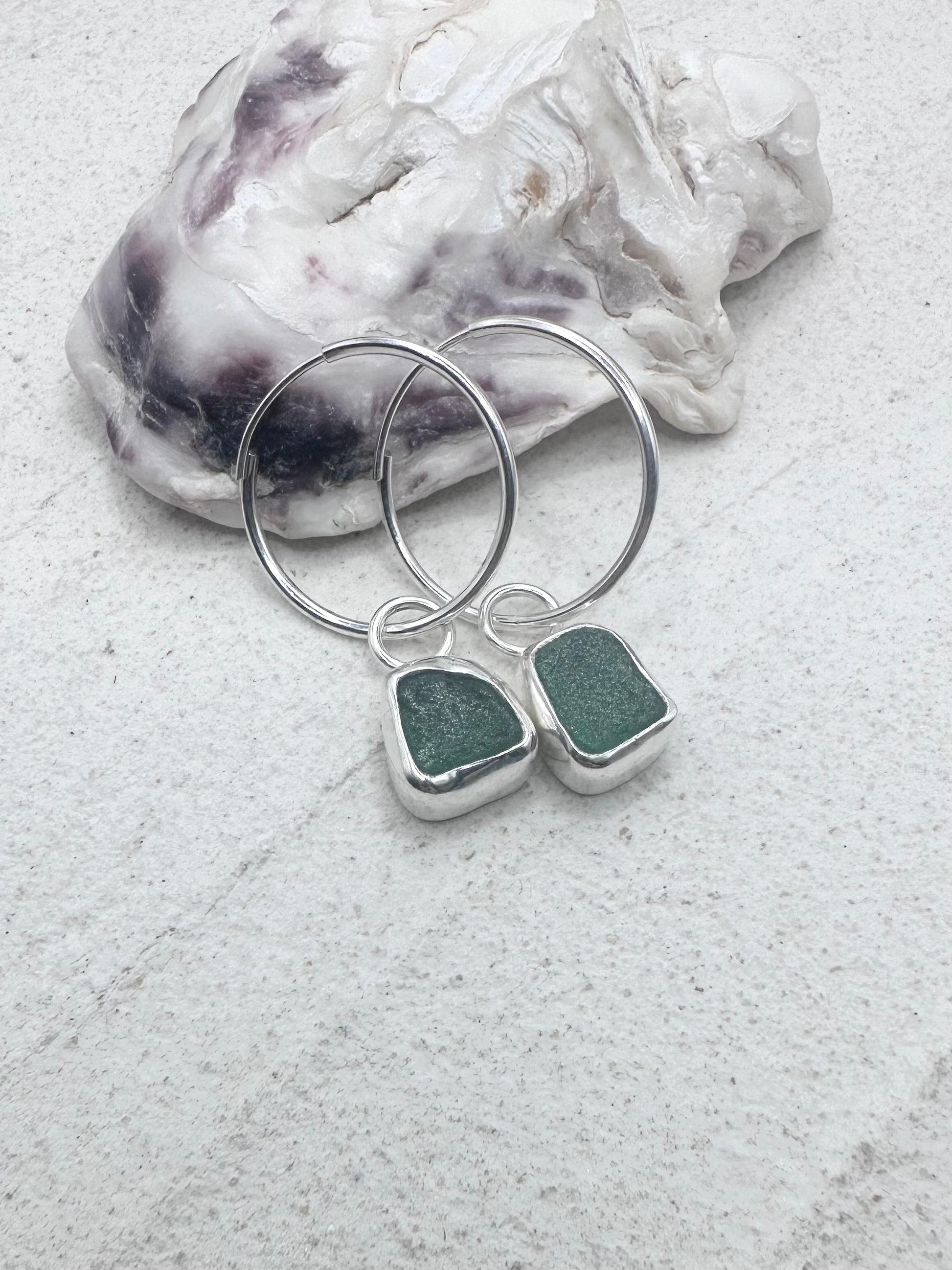 Beautiful one-of-a-kind handcrafted sterling silver & seaglass charm earrings